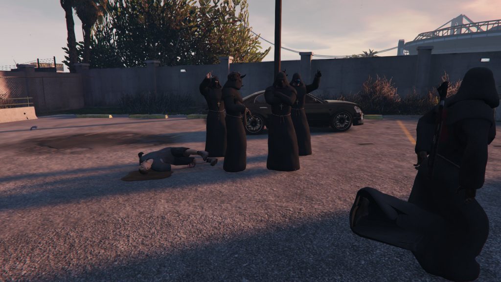 Eyewitnesses claim to have seen a dozen robed figures dressed in black, engaged in what appeared to be a religious ceremony. At the center of the gathering, a woman seemed to float above the ground, defying gravity. While certain aspects of such rituals may be perfectly legal, the situation took a dark turn when reports emerged of individuals being kidnapped to participate in sacrificial aspects of the ceremony. In a shocking twist, three officers of the LSPD fell victim to this highly illegal and sinister practice.